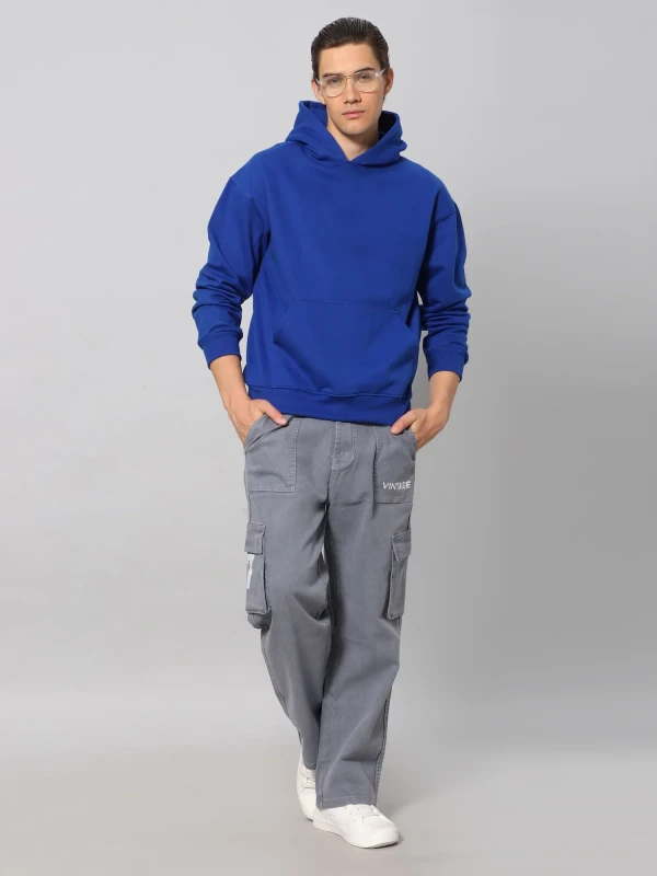 Hoodie ka design oversize aur relaxed fit mein hai, jo comfort ke saath modern silhouette bhi provide karta hai. Kangaroo pocket aur adjustable drawstring hood functionality aur fashion dono ke liye perfect hai. Fabric shrink-resistant, durable aur colorfast hai, jisse multiple washes ke baad bhi hoodie apna rich royal blue shade aur premium finish maintain karti hai.