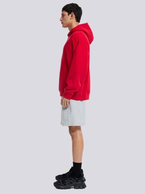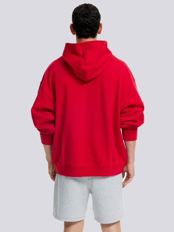 Hoodie ka design oversize aur relaxed fit mein hai, jo comfort ke saath modern silhouette bhi provide karta hai. Kangaroo pocket aur adjustable drawstring hood functionality aur style dono ke liye perfect hai. Fabric shrink-resistant, durable aur colorfast hai, jisse multiple washes ke baad bhi hoodie apni rich red shade aur premium texture maintain karti hai.