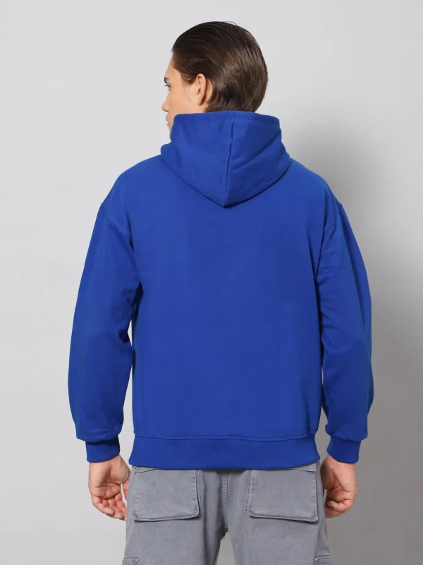 Hoodie ka design oversize aur relaxed fit mein hai, jo comfort ke saath modern silhouette bhi provide karta hai. Kangaroo pocket aur adjustable drawstring hood functionality aur style dono ke liye perfect hai. Fabric shrink-resistant, durable aur colorfast hai, jisse multiple washes ke baad bhi hoodie apni rich royal blue shade aur premium texture maintain karti hai.