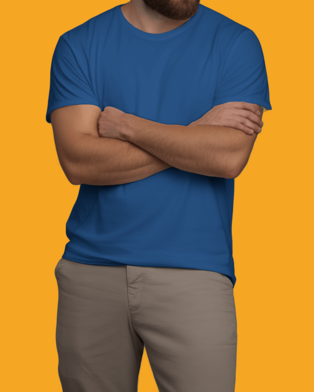 T-shirt ka design regular fit mein hai jo men ke liye comfortable aur sleek silhouette provide karta hai. Ribbed crew neck, double-stitched hems aur durable stitching is T-shirt ko long-lasting aur multiple washes ke liye shrink-resistant banati hai. Back side par customized print (logo, graphic design, typography ya brand message) advanced printing techniques jaise screen printing, DTG ya heat transfer ke through kiya jata hai, jo color-fast, long-lasting aur wash-resistant hota hai.