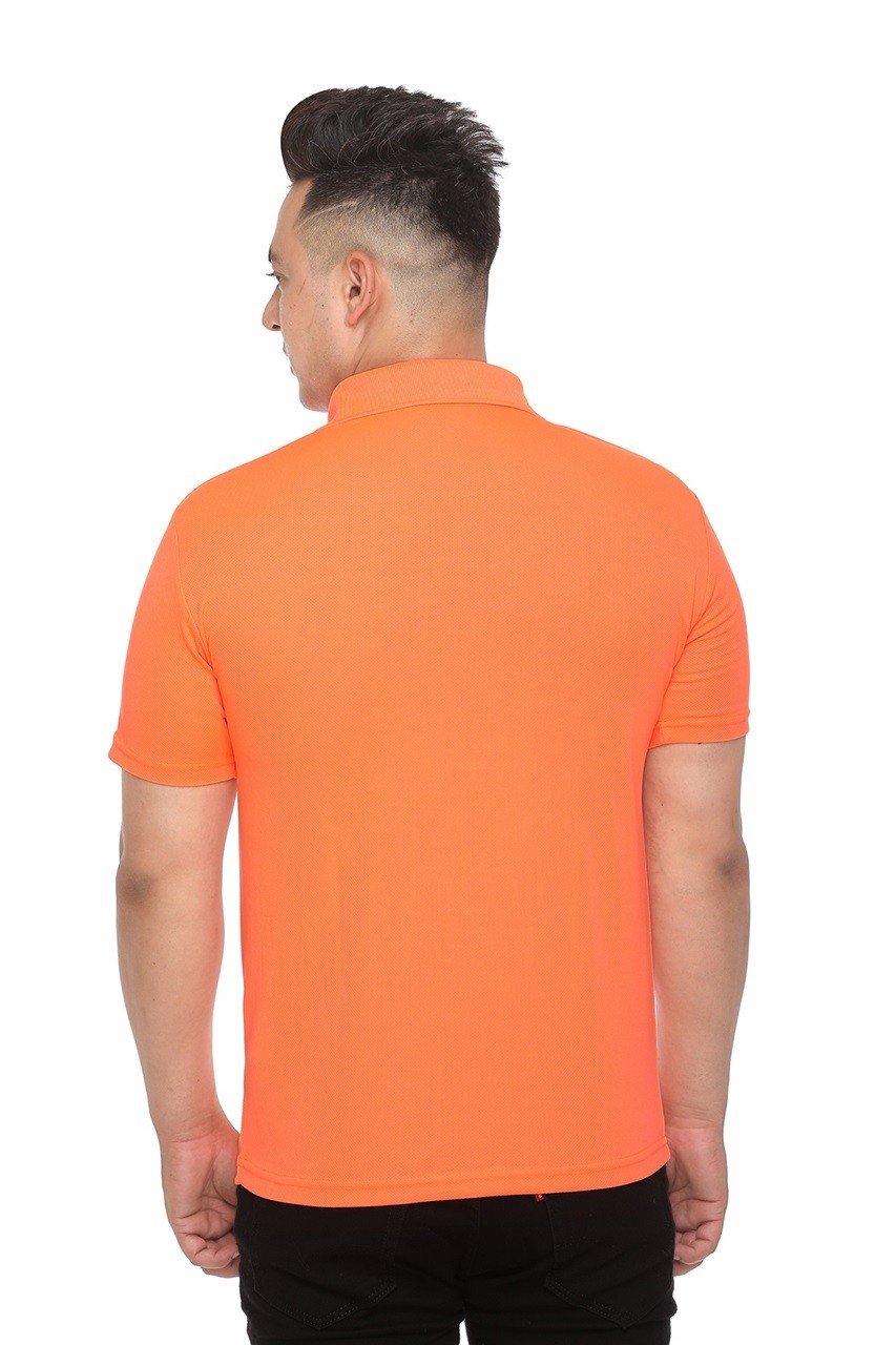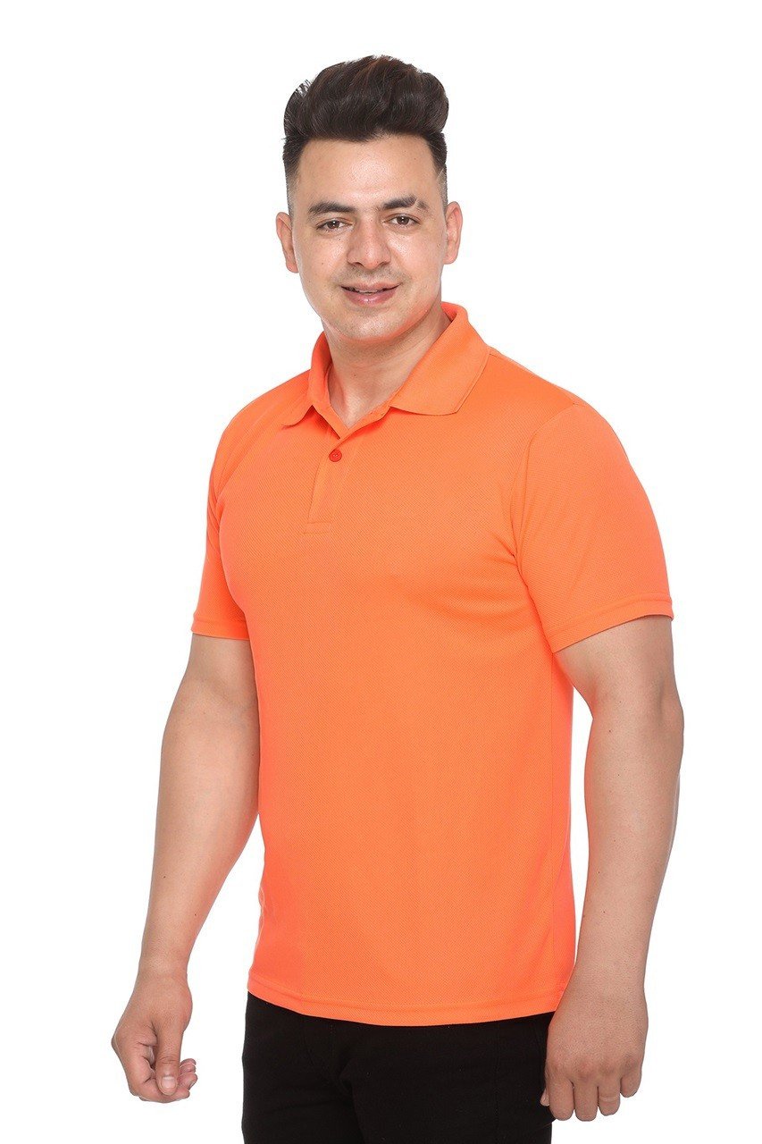 Bright orange color is t-shirt ko vibrant aur energetic look deta hai, jo casual aur sporty style dono ke liye perfect hai. Polo collar aur buttoned placket isse smart-casual appeal dete hain, jo college wear, weekend outings, ya office casual ke liye ideal hai.