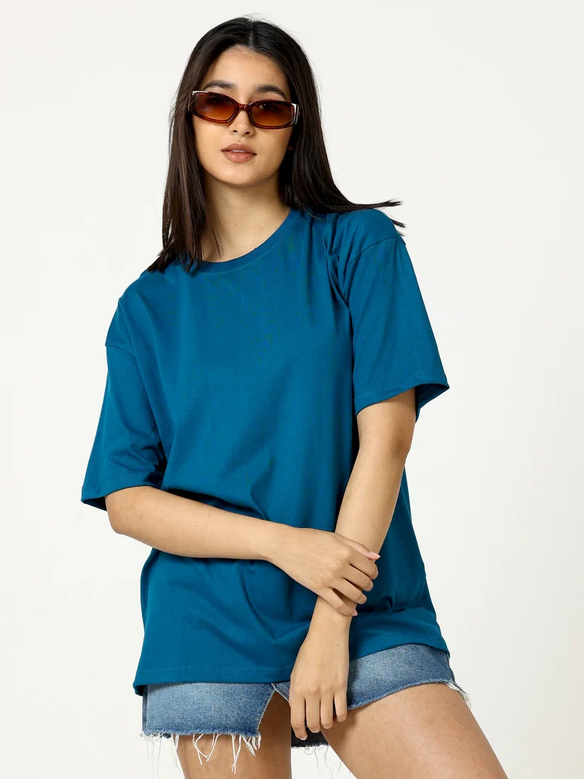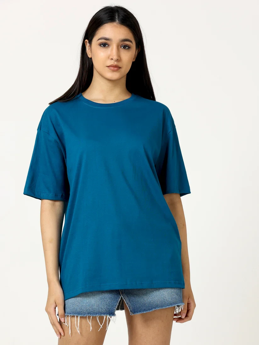 Navy Blue Women's Cotton Oversize T-Shirt ek classic aur stylish option hai jo casual wear aur street style ke liye perfect hai. Ye T-Shirt premium quality cotton fabric se bana hai jo soft, breathable aur skin-friendly feel deta hai. Oversize fit relaxed aur modern look provide karta hai, jo jeans, leggings, shorts ya skirts ke saath perfectly pair hota hai. Navy blue color elegant, versatile aur timeless look add karta hai, jo college, weekend outings, shopping trips ya casual gatherings ke liye ideal hai. T-Shirt me fine stitching aur durable fabric hai jo multiple washes ke baad bhi apna shape aur color maintain karta hai. Lightweight aur versatile design ke saath, ye Oversize T-Shirt wardrobe ka must-have fashion essential hai.