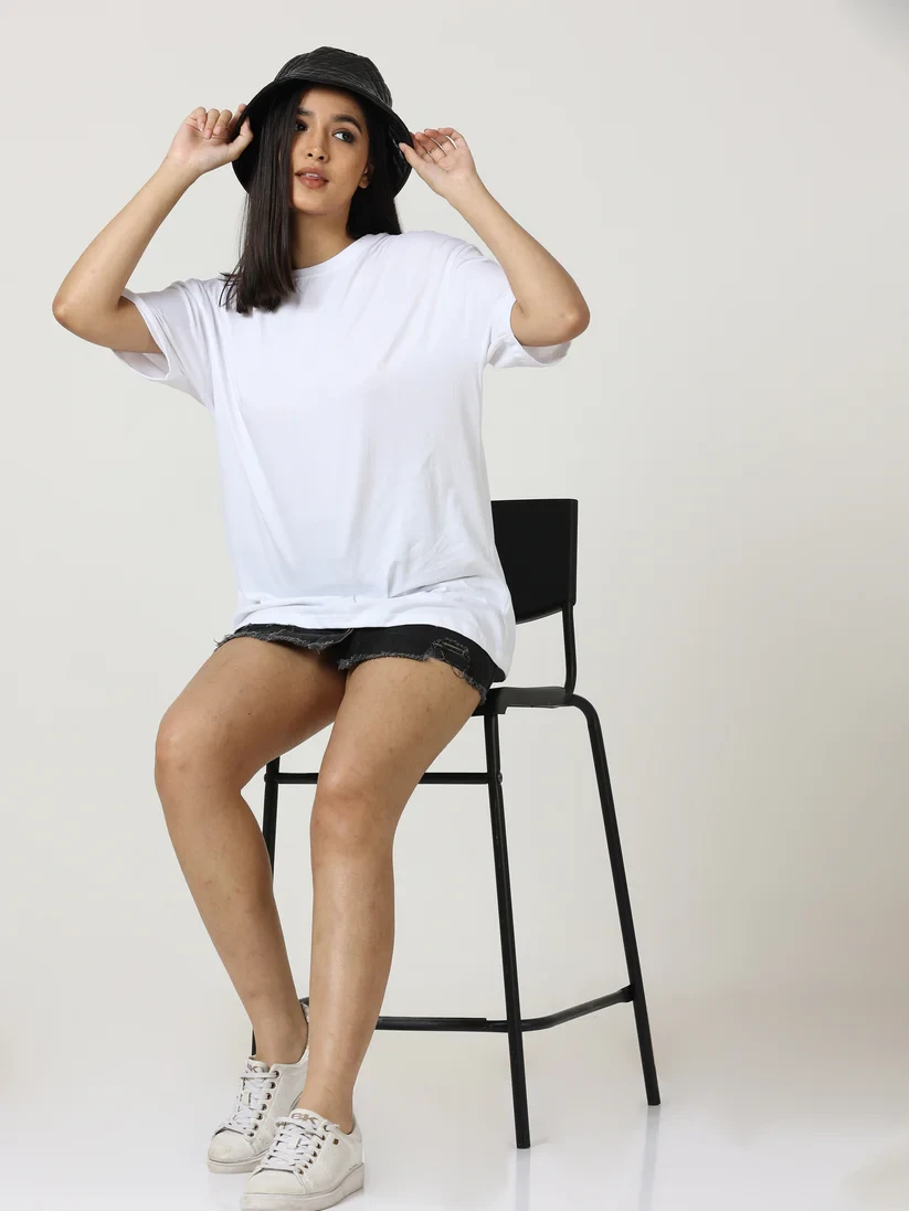 Women's Cotton Oversize T-Shirt ek stylish aur comfortable option hai jo casual wear aur street style ke liye perfect hai. Ye T-Shirt premium quality cotton fabric se bana hai jo soft, breathable aur skin-friendly feel deta hai. Oversize fit relaxed aur modern look provide karta hai, jo jeans, leggings, shorts ya skirts ke saath perfectly pair hota hai. Available in multiple colors like lavender, sky blue, beige, peach aur mint, ye T-Shirt college, weekend outings, shopping trips ya casual gatherings ke liye ideal hai. T-Shirt me fine stitching aur durable fabric hai jo multiple washes ke baad bhi apna shape aur color maintain karta hai. Lightweight aur versatile design ke saath, ye Oversize T-Shirt wardrobe ka must-have fashion essential hai.